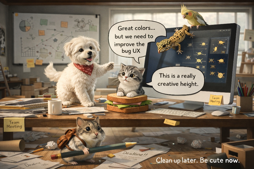 Mapping predictable and unpredictable animal behaviors to comedic scenarios. Building the sitcom's narrative arcs.